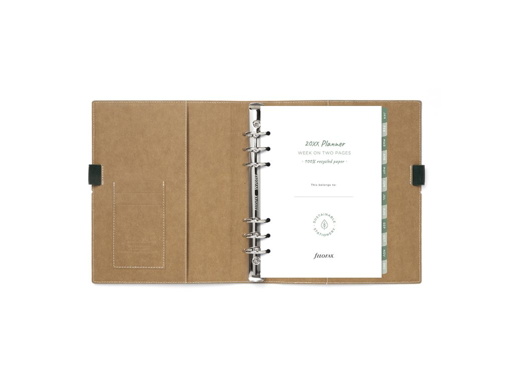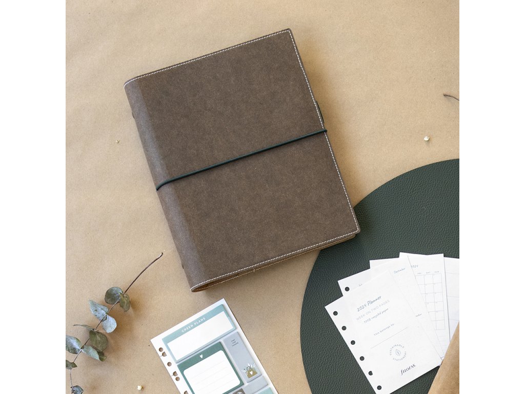Vychutnejte si uvědomělý život s pomocí tohoto diáře z kolekce Eco Essential. Tento udržitelný diář má desky z veganského materiálu ze 100% celulózových vláken a Eco náplň s kalendářem týden na 2 strany vytištěným na recyklovaném papíru s certifikací FSC. Desky mají ekologickou voděodolnou povrchovou úpravu, zabraňující skvrnám.