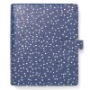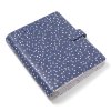 Sledujte, jak Vaše nápady ožívají v tomto diáři z kolekce Indigo. Desky jsou z hladkého materiálu koženého vzhledu a detaily ze zlaté fólie. Vnitřní stranu desek zdobí šedá barva se vzorem.