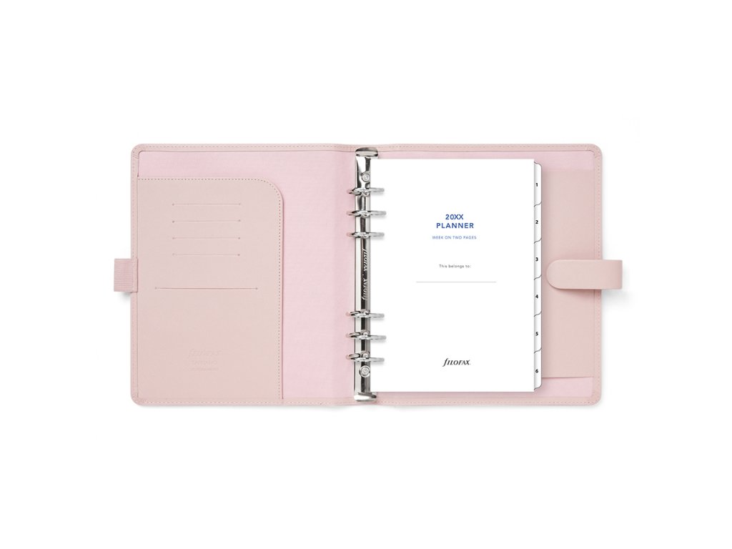 - Papírová krycí stránka, přední strana, nedatovaný roční plánovač, kalendář CZ&SK, 6 rozdělovačů, tečkované papíry, čisté papíry, linkované papíry, seznam úkolů, kontakty, modré linkované papíry, zelené linkované papíry, růžové linkované papíry, pravítko / záložka, obálka s horním otevíráním. Standardní naplnění je dodáváno zdarma a může se lišit od popisu nebo obrázku.