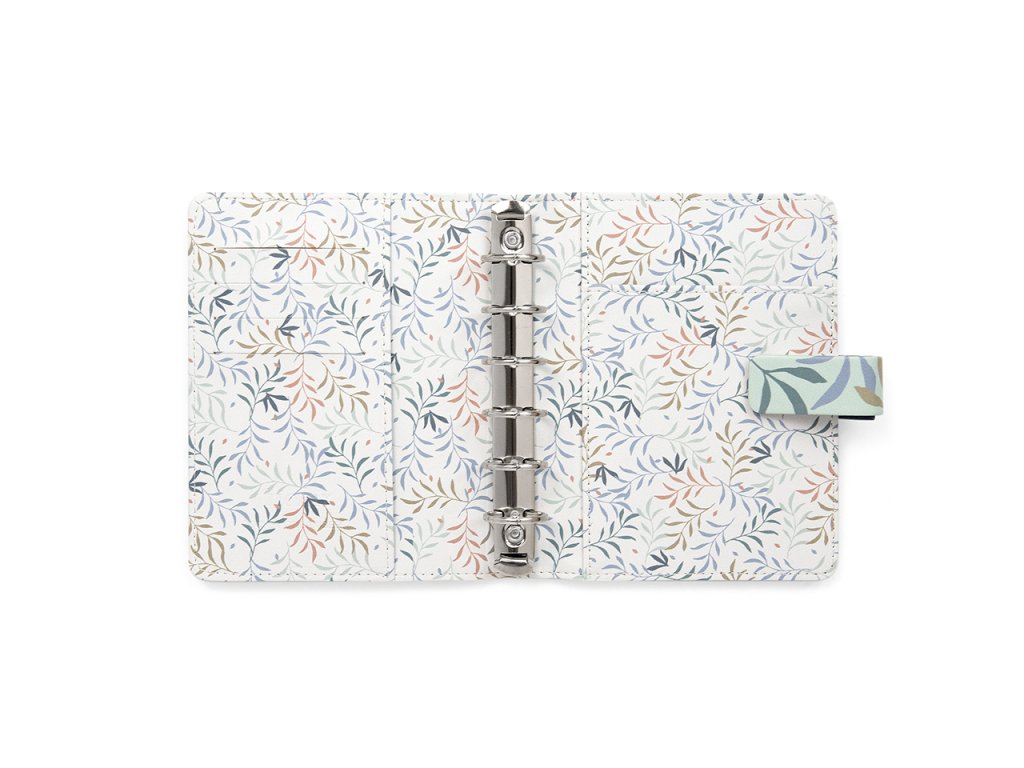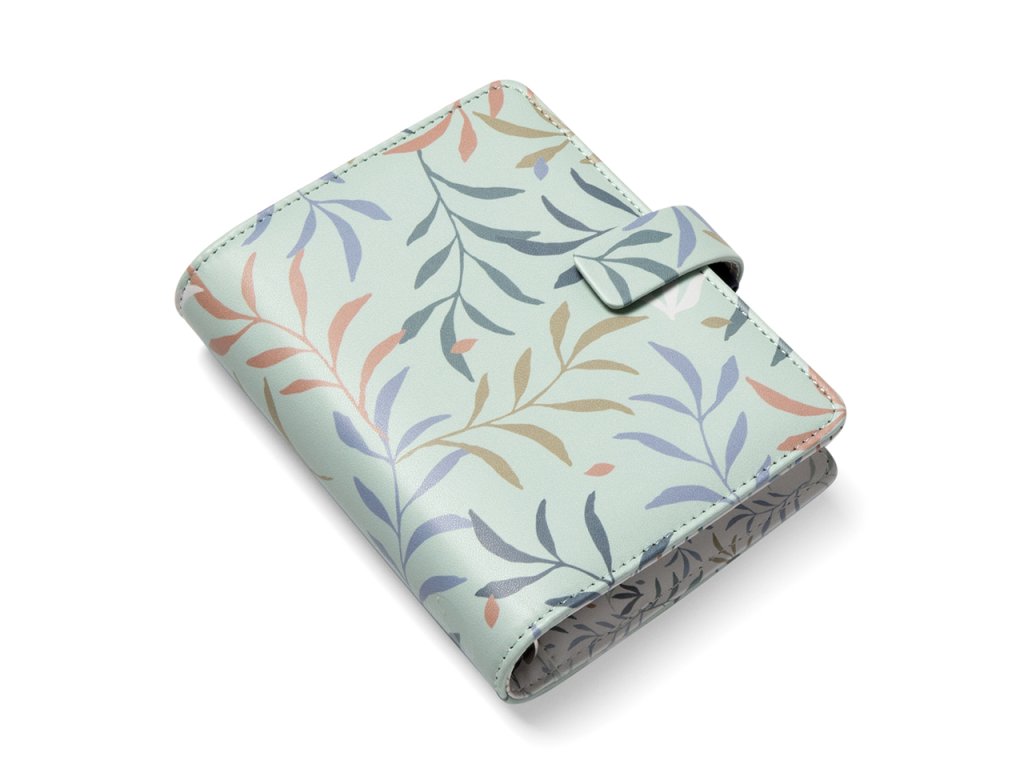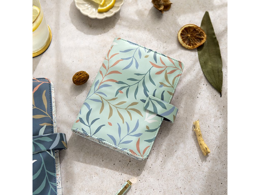 Jasné a výrazné květinové vzory, zdobící desky tohoto kapesního diáře v mint barvě z kolekce Botanical, vytvářejí dojem svěží zahrady v krásných zelených a zemitých odstínech.