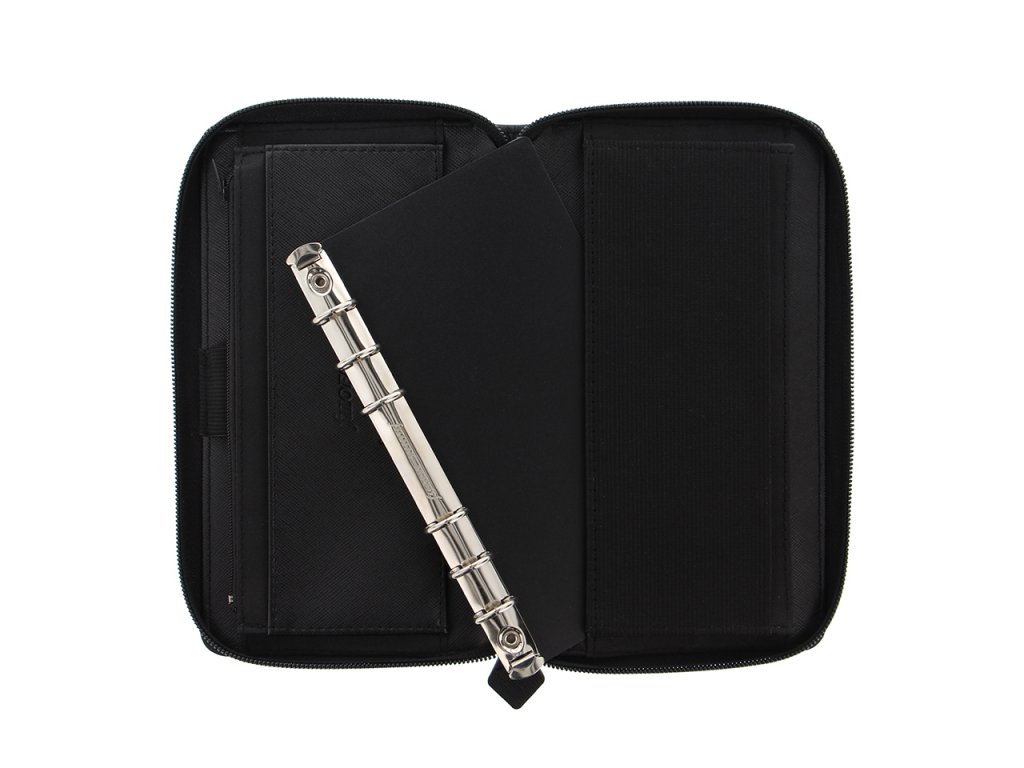 Vše potřebné na jednom místě – to jsou diáře Saffiano v provedení osobní compact zip. Spojují kompaktní diář s dámskou peněženkou. Zapínání na zip, kapsy pro bankovky, karty, také zapínací kapsa na mince a celé je to doplněné o vyjímatelnou kroužkovou vazbu. Takže diář můžete nechat doma, když jdete s kamarádkami ven.