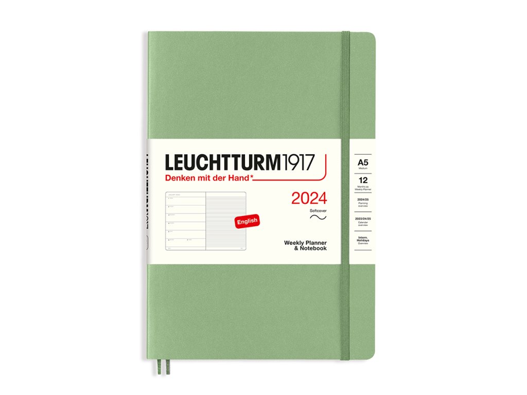 Týdenní diář Leuchtturm1917 kombinuje výhody stručného a jasného plánování s volností linkovaného zápisníku. Na levé straně je přehled týdne a na pravé linkovaná stránka. Díky tomu je ideálním společníkem pro ty, kteří hledají datovanou verzi týdenního diáře s prostorem pro poznámky, náčrty, koláže atd.