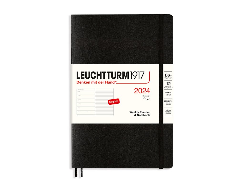 Týdenní diář Leuchtturm1917 na rok 2024 kombinuje výhody stručného a jasného plánování s volností linkovaného zápisníku. Na levé straně je přehled týdne a na pravé linkovaná stránka. Díky tomu je ideálním společníkem pro ty, kteří hledají datovanou verzi týdenního diáře s prostorem pro poznámky, náčrty, koláže atd.