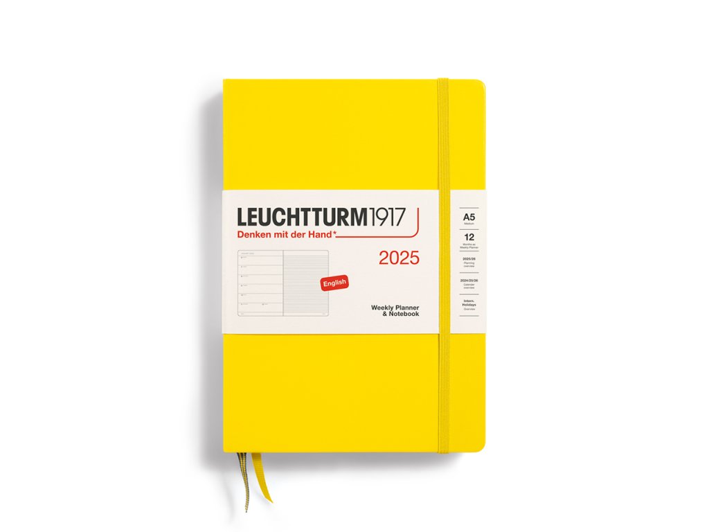 Týdenní diář Leuchtturm1917 kombinuje výhody stručného a jasného plánování s volností linkovaného zápisníku. Na levé straně je přehled týdne a na pravé linkovaná stránka. Díky tomu je ideálním společníkem pro ty, kteří hledají datovanou verzi týdenního diáře s prostorem pro poznámky, náčrty, koláže atd.
