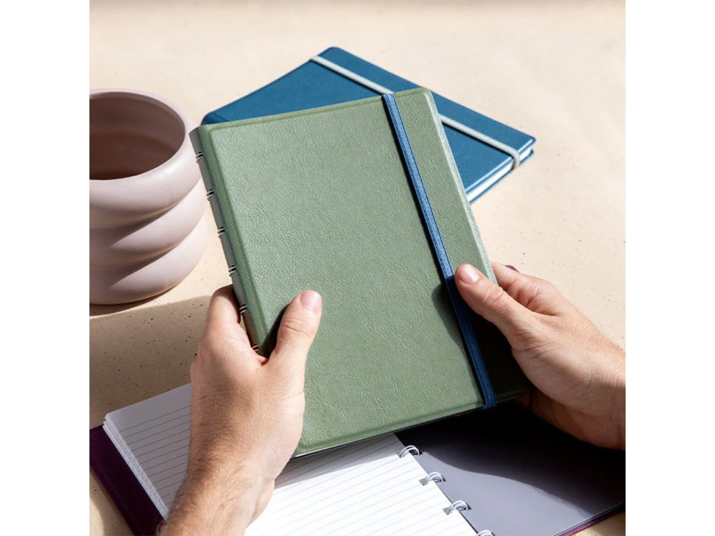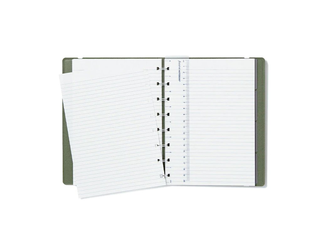 Filofax Notebooky nabízejí jednoduchost poznámkového bloku spojenou s volností personalizace. Pevné desky z příjemného materiálu připomínající kůži, dvojitá kroužková vazba a zavírání na gumičku – to jsou poznávací znaky těchto poznámkových bloků. To největší kouzlo se však ukrývá uvnitř. Díky unikátní a chytré konstrukci si jednoduše můžete přidat, odebrat nebo přemístit jednotlivé stránky dle libosti.