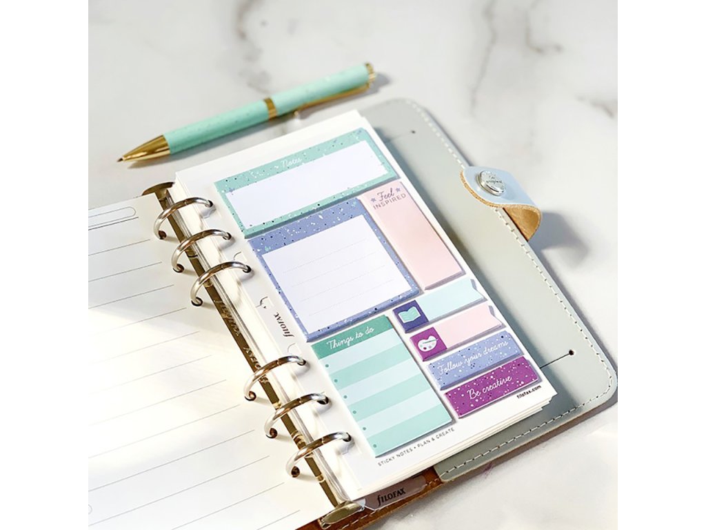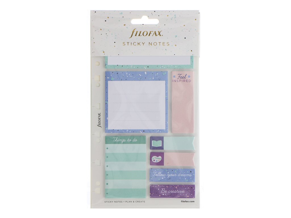 Rozzařte Vaše poznámky a plány přívalem barev díky této sadě lepicích poznámkových papírků z kolekce Filofax Expressions. Sada byla navržena tak, abyste ji mohli umístit do vašeho diáře či Clipbooku velikosti A5 nebo Osobní (A6) a také do zápisníku Filofax Notebook A5.