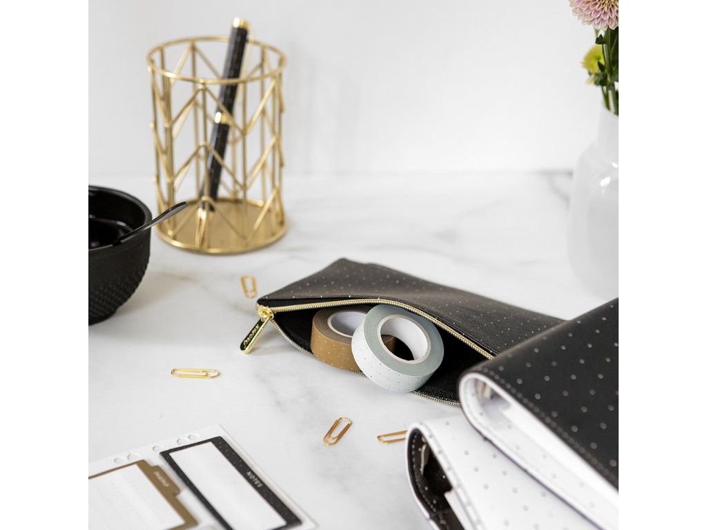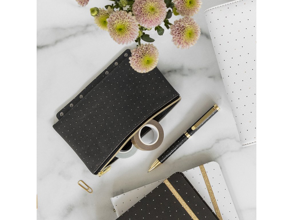 Krásné vzorované pouzdro v černých a zlatých tónech bude skvělým pomocníkem ve Vašem diáři nebo Clipbooku Filofax.