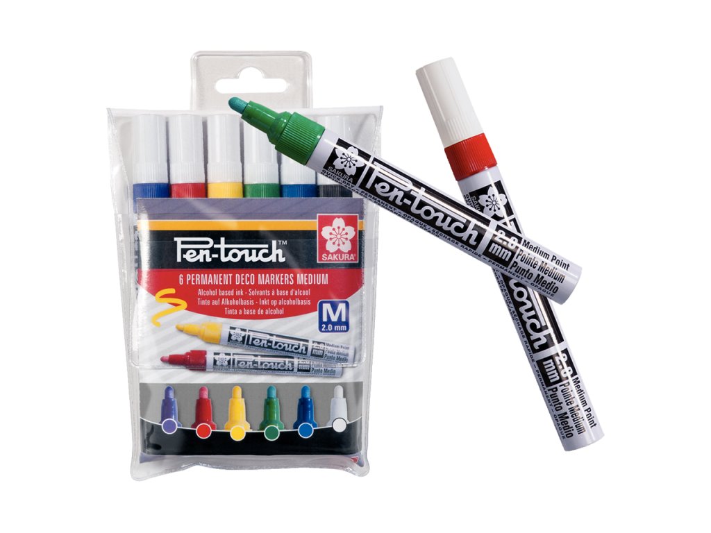 Barevná pera Sakura Pen Touch mají silně pigmentovaný inkoust na alkoholové bázi. Skvěle drží na všech neporézních površích jako jsou: papír, sklo, keramika, kov, plast nebo dřevo. Inkoust je voděodolný, plně krycí, nerozmazává se a po nanesení rychle zasychá. Uvnitř pera je ocelová kulička pro promíchání. Před prvním použitím je nutné několikrát stlačit hrot, aby do něj vtekl inkoust.