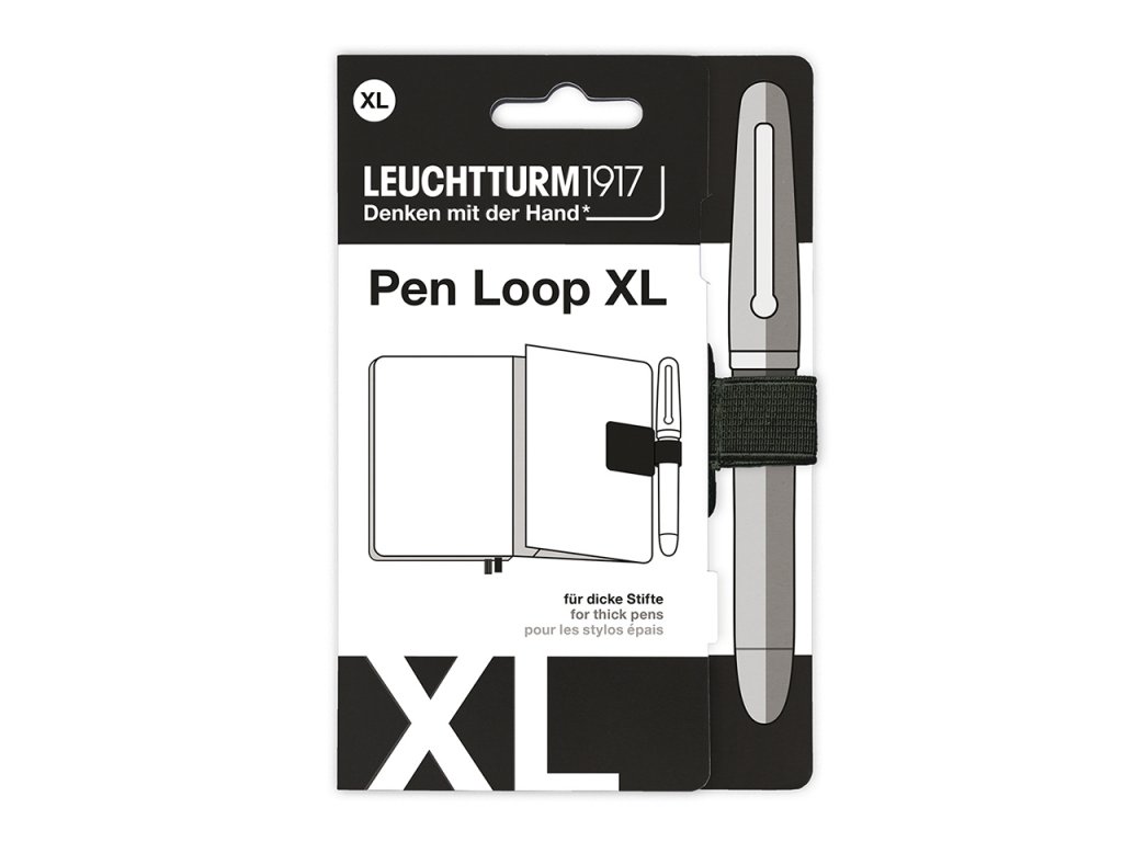 Praktické poutko Leuchtturm1917 XL ve stylové černé barvě je vhodné pro plnicí pera, větší kuličková pera nebo zvýrazňovače a popisovače.
