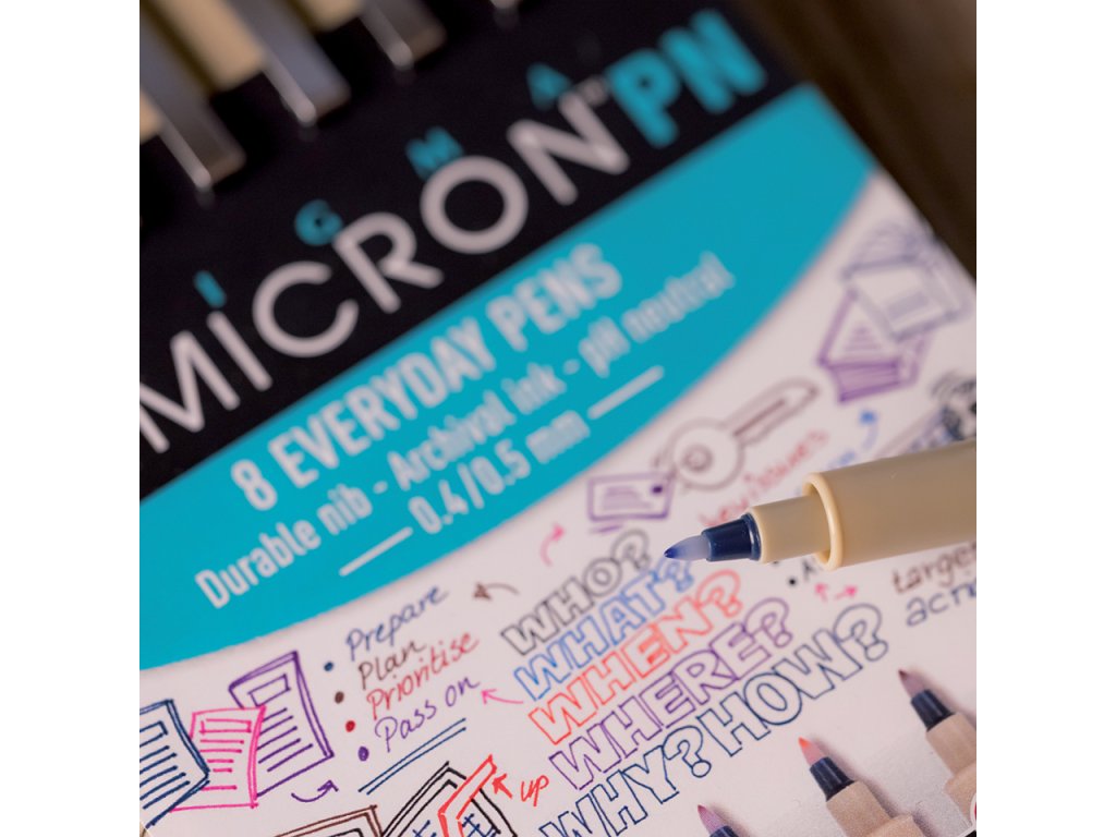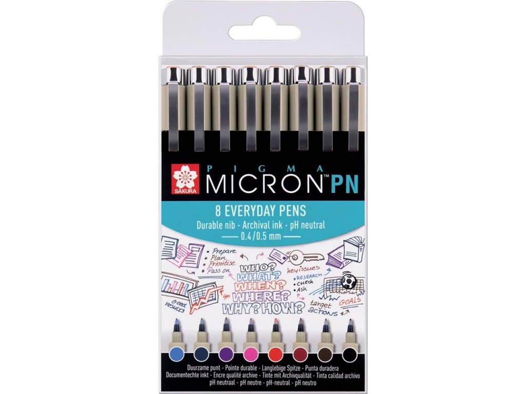 Sakura Pigma Micron PN má velmi odolný kuličkový hrot. Díky jeho flexibilitě se tloušťka linky pohybuje mezi 0,4 - 0,5mm, záleží na tlaku a náklonu pera.