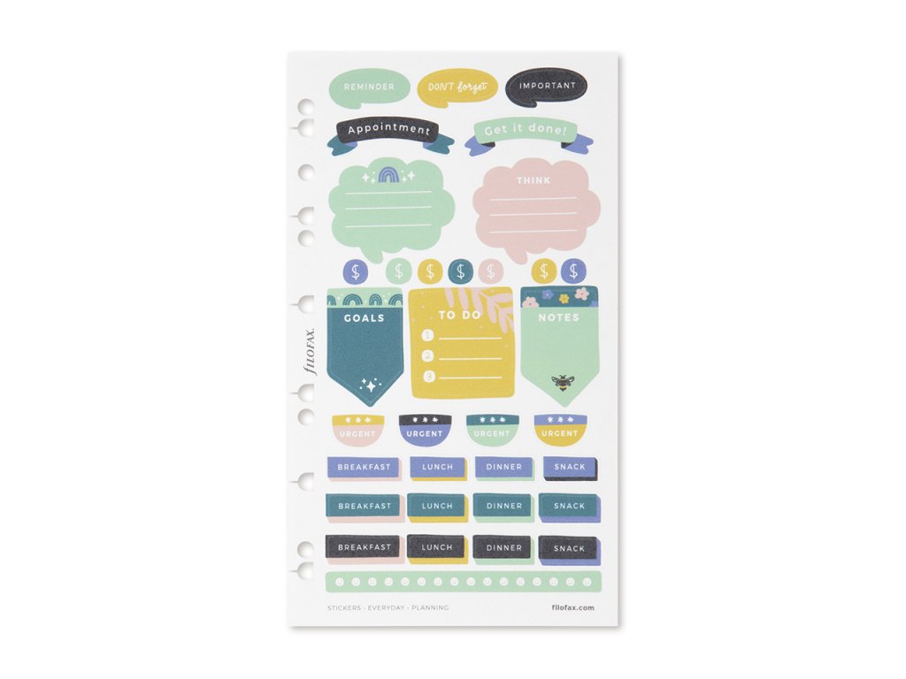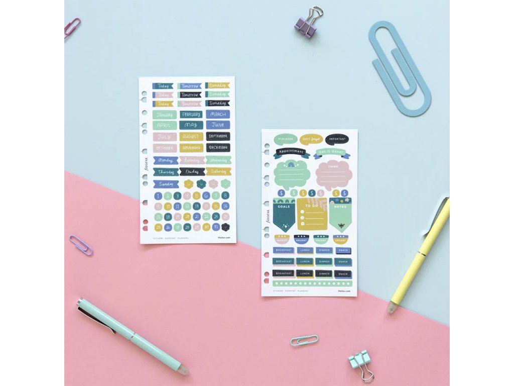 Usnadněte si zaznamenání každodenních úkolů, termínů a událostí s těmito plánovacími samolepkami Filofax. Jsou přemístitelné a vytištěné na matném povrchu, takže na ně můžete snadno psát pery a fixy. Sada obsahuje šest archů samolepek se dvěma hravými vzory. Aršíky samolepek si můžete snadno umístit do vašeho diáře či Clipbooku velikosti A5 nebo Osobní a taky do zápisníku Filofax Notebook A5 a A4.
