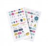 Buďte soustředění v práci nebo ve škole díky těmto samolepkám. Lze je používat opakovaně a snadno na ně můžete psát díky matnému povrchu. Sada obsahuje šest archů samolepek se dvěma hravými vzory. Archy můžete jednoduše vložit do vašeho diáře či Clipbooku A5 a Osobní (A6) nebo zápisníku Filofax Notebook A5 a A4.