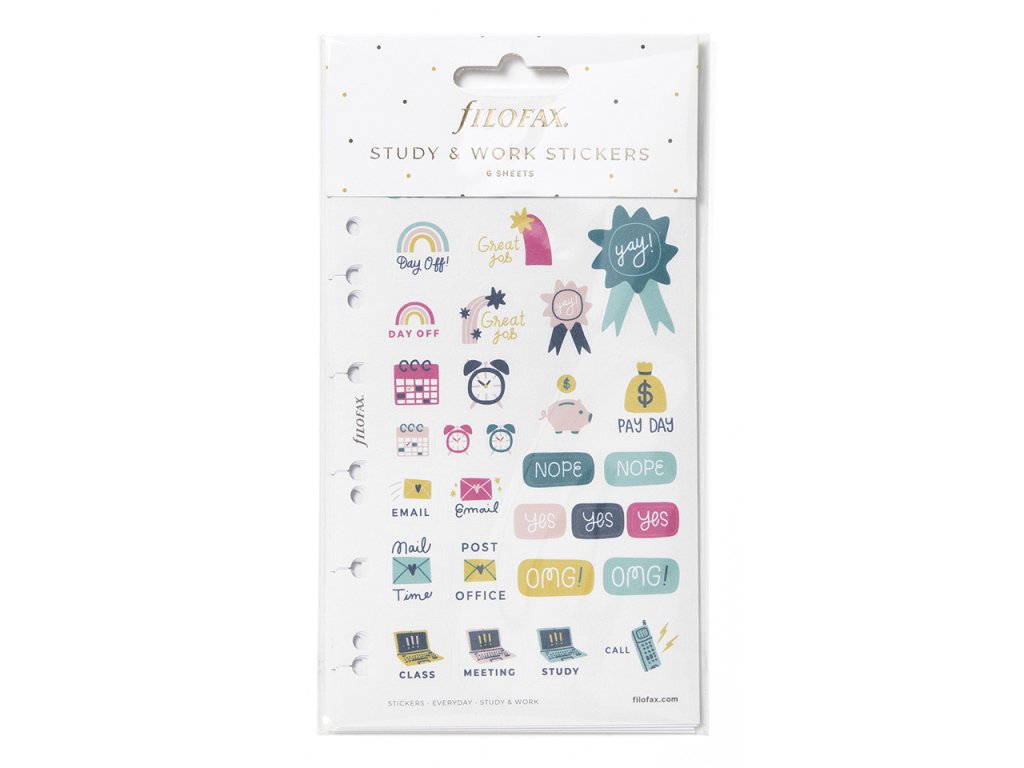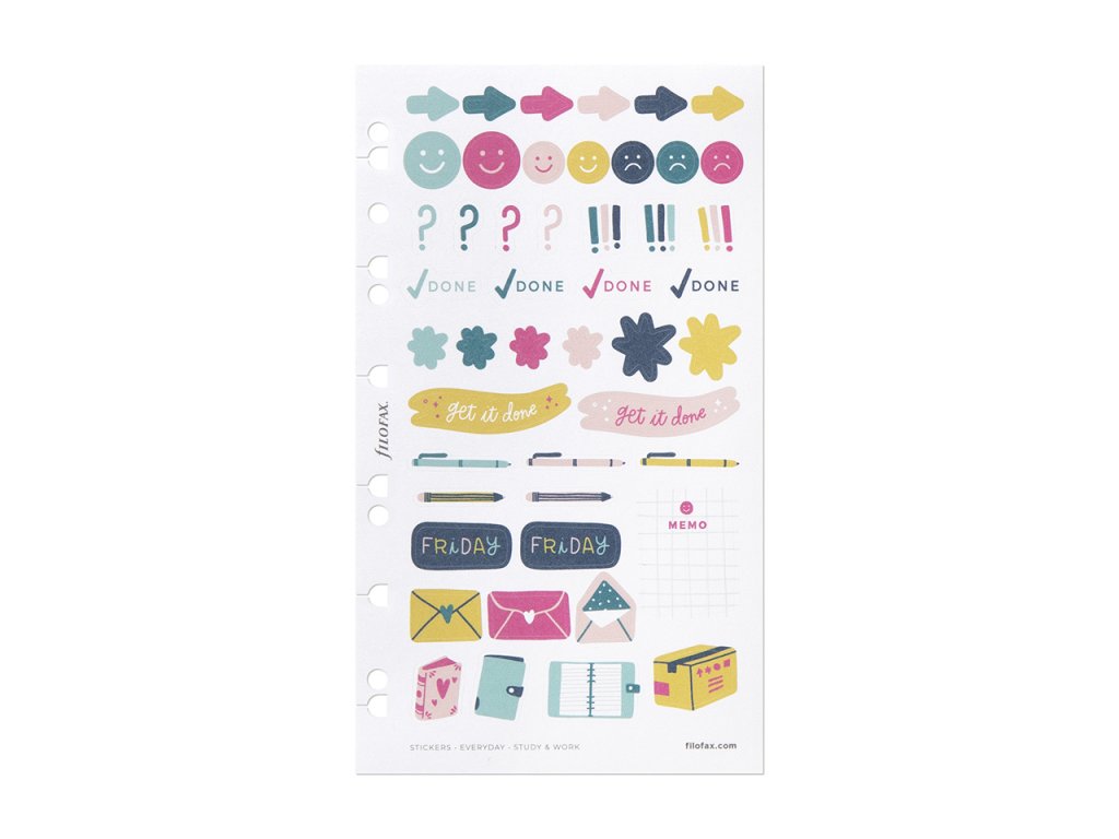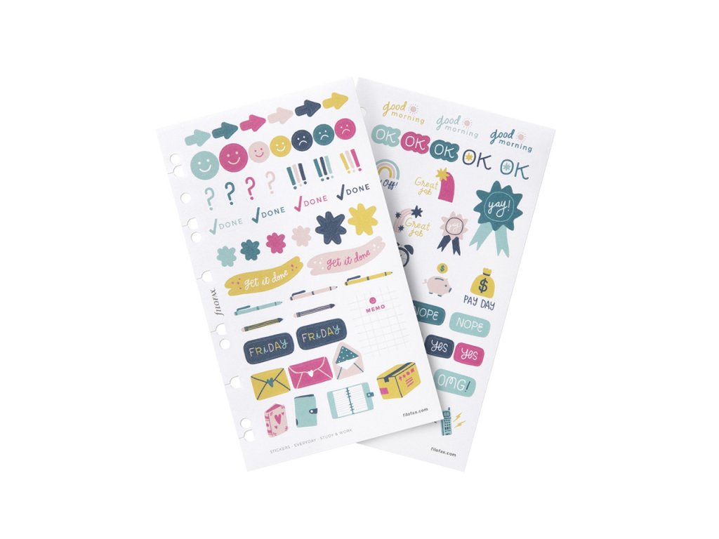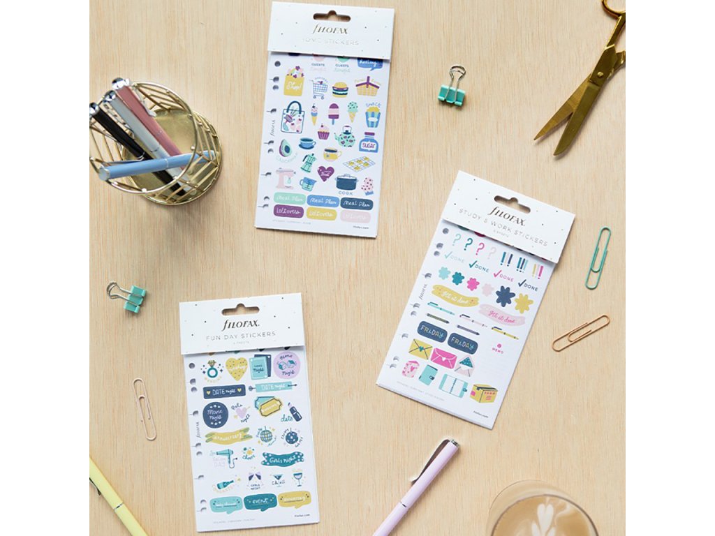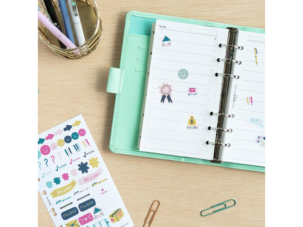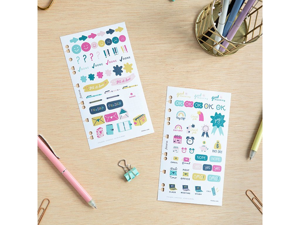 Buďte soustředění v práci nebo ve škole díky těmto samolepkám. Lze je používat opakovaně a snadno na ně můžete psát díky matnému povrchu. Sada obsahuje šest archů samolepek se dvěma hravými vzory. Archy můžete jednoduše vložit do vašeho diáře či Clipbooku A5 a Osobní (A6) nebo zápisníku Filofax Notebook A5 a A4.
