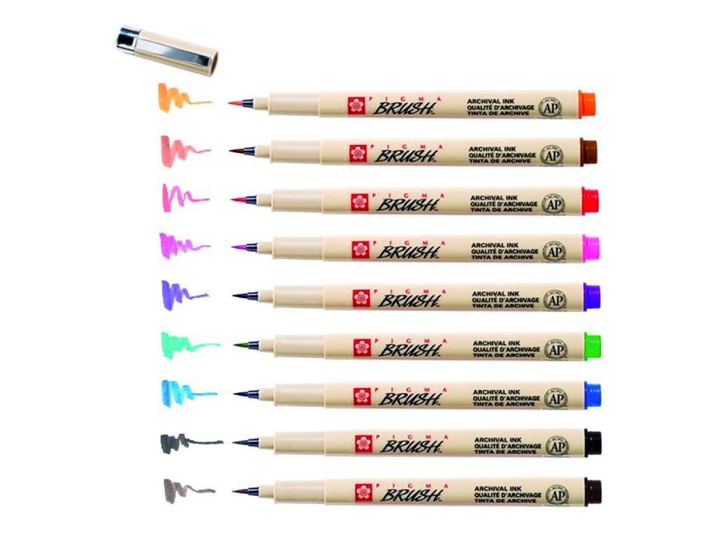 Sakura Pigma Brush se hodí na psaní tlustých tahů i tenkých linek. Jeho jemný flexibilní hrot reaguje na změny tlaku i směru ohybu.