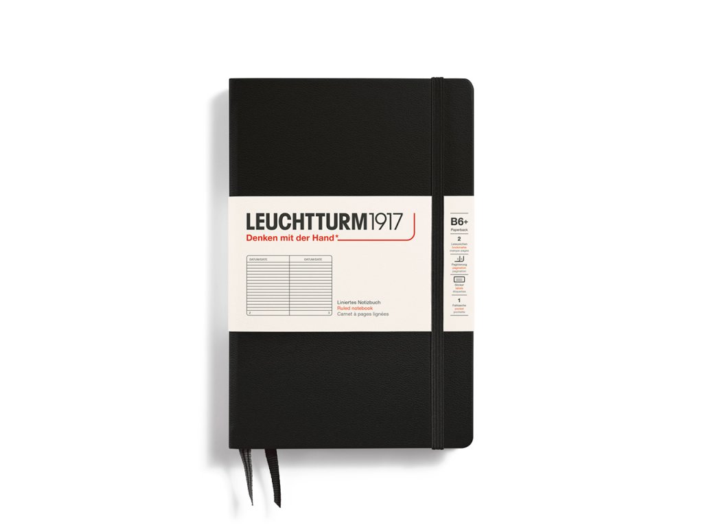 Stylový linkovaný zápisník Leuchtturm1917 v černé barvě.