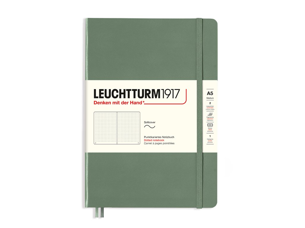 Stylový tečkovaný zápisník Leuchtturm1917 v měkké vazbě v zelené barvě.