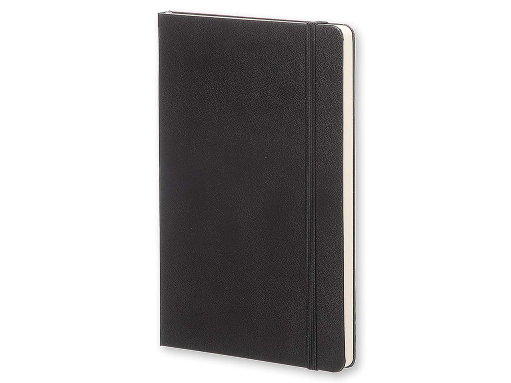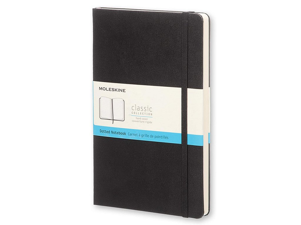 Klasický tečkovaný zápisník Moleskine v černé barvě.
