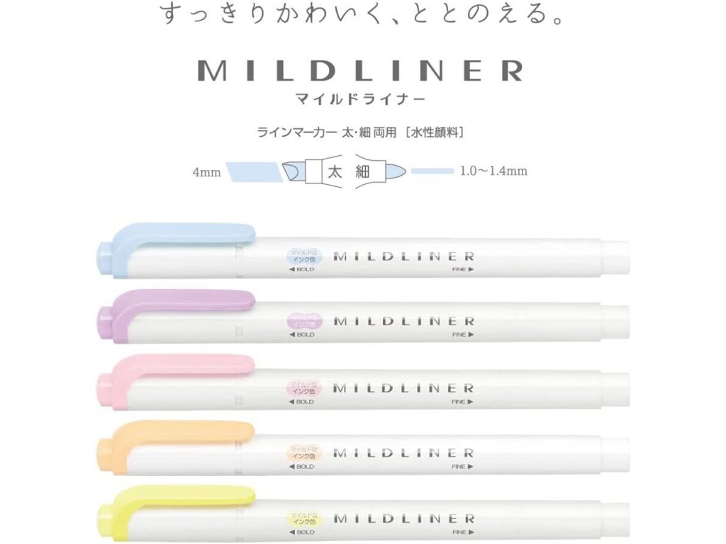 Sada 5 oboustranných zvýrazňovačů Zebra Mildliner v jemných odstínech. Na jedné straně je tenký hrot pro drobné linky a na druhé zkosený hrot pro silnější tahy. Skvěle se hodí pro bullet journaling, plánování, krasopísmo, poznámky nebo třeba pro svědomité studium na zkoušku.